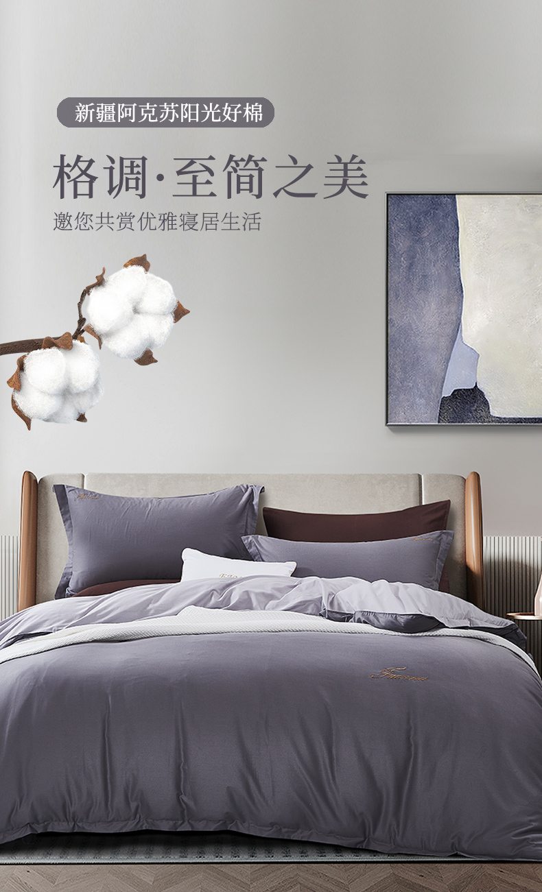 ● 高支高密 精梳棉:选用新疆阳光棉朵,每一朵都晒满阳光,高支高密,织就软腻透气的亲肤面料。